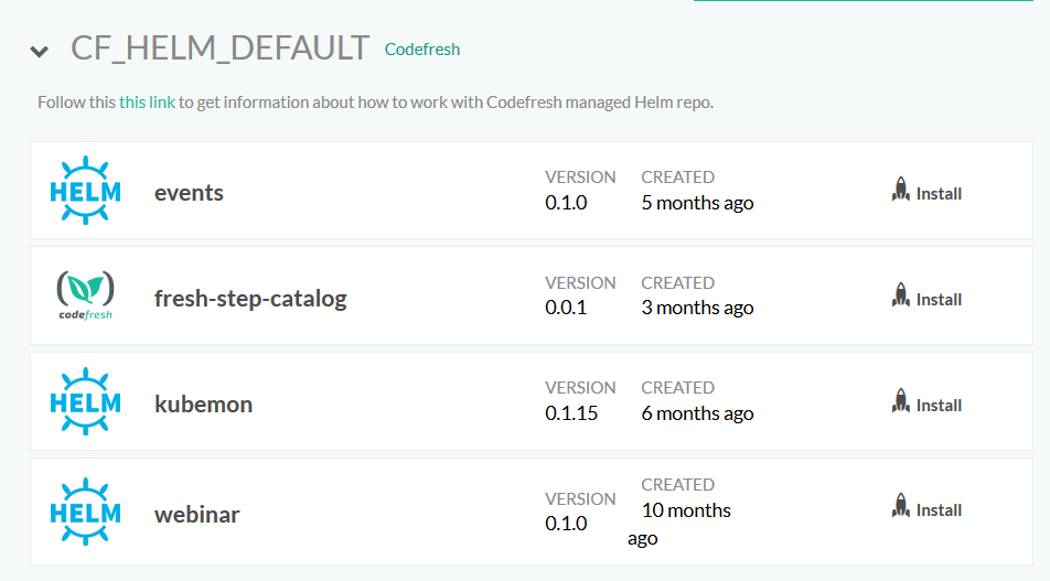 - Creating the Helm chart and storing it to a staging Helm repository (i.e. the Codefresh Helm repository)