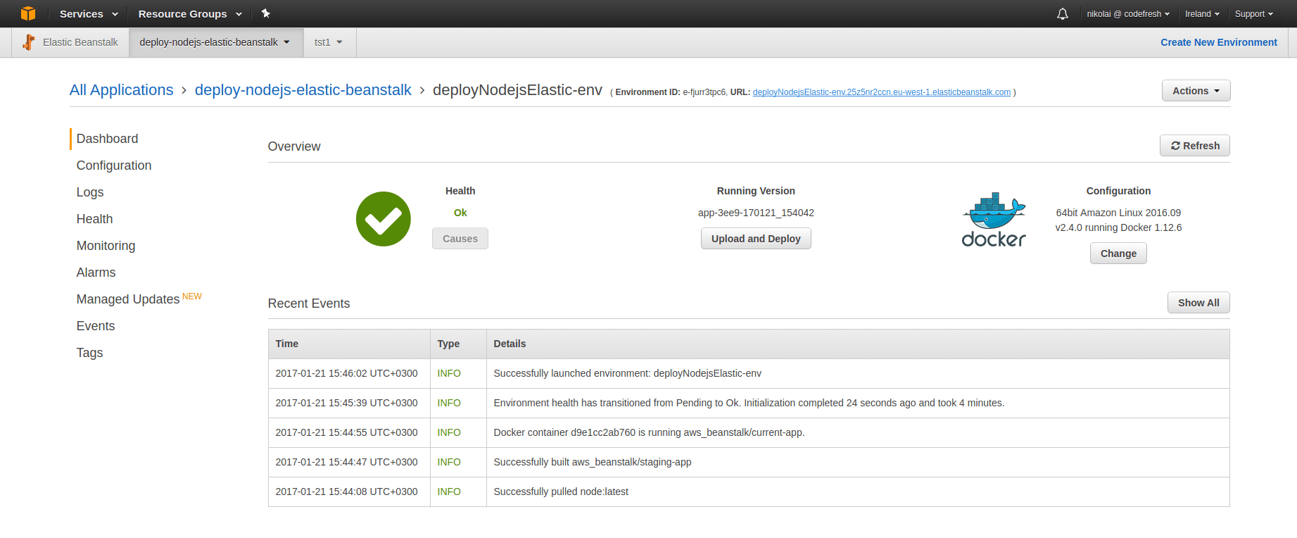 - Configured Application in Elastic Beanstalk service
