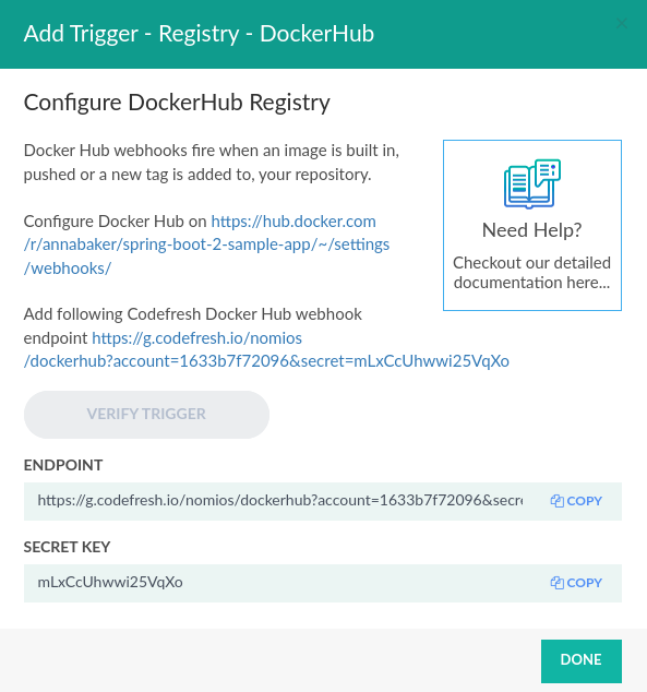 Currently, an additional manual action is required to bind DockerHub push image event to the Codefresh trigger-event.