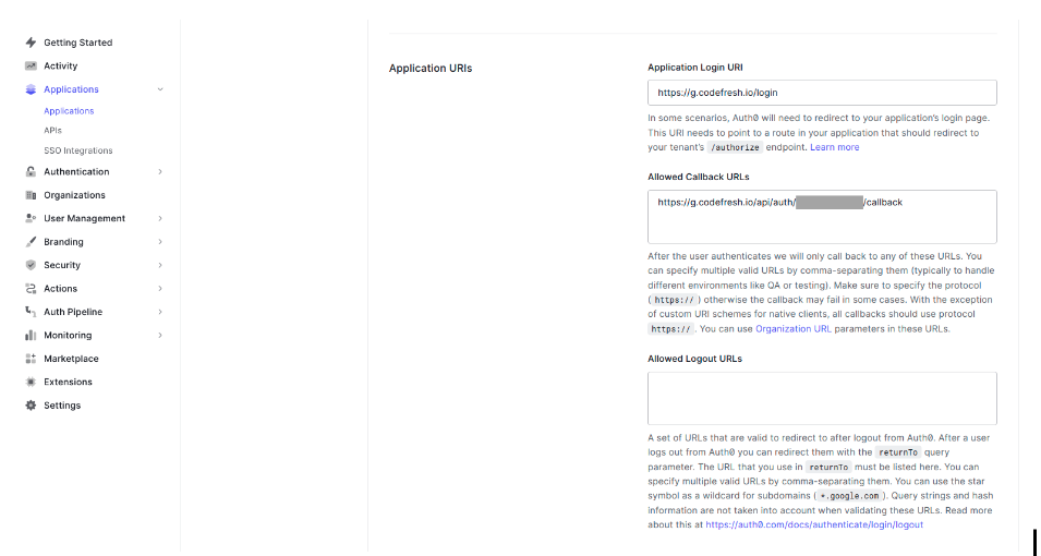 https://g.codefresh.io/login. - In the Allowed Callback URLs field, enter