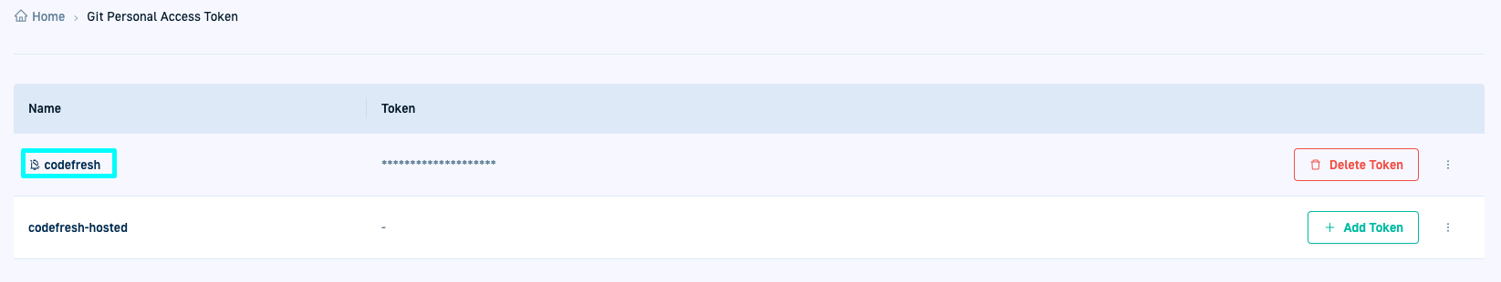 - In the Codefresh UI, on the toolbar, click your avatar, and then select Git Personal Access Token.