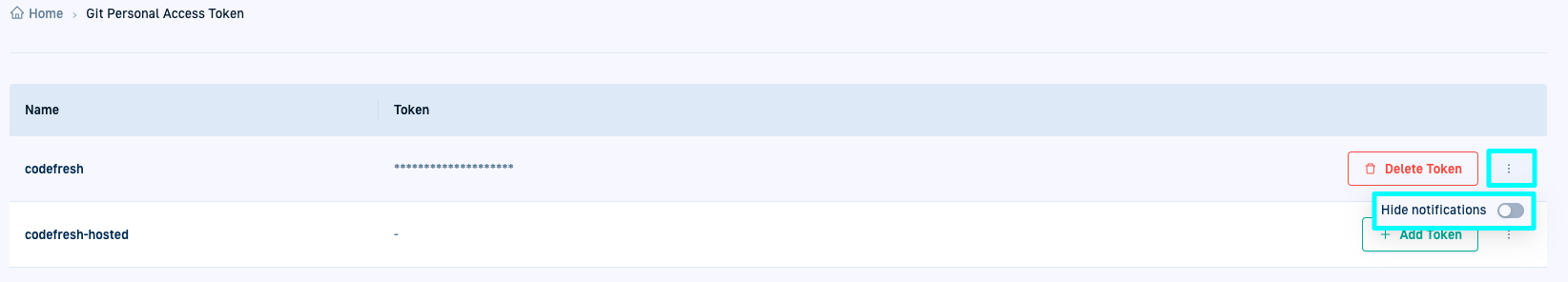If you have turned on notifications for GitOps Runtimes, Codefresh alerts you to those Runtimes with invalid or expired Git personal access tokens.