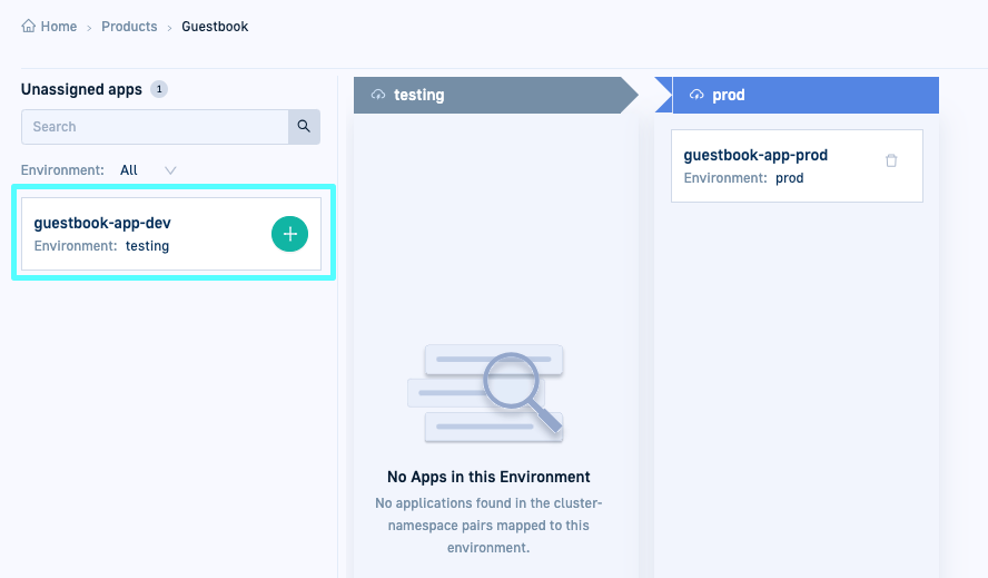 You can see that the Unassign icon is disabled for theguestbook-app-prodindicating that it is connected through an annotation.
