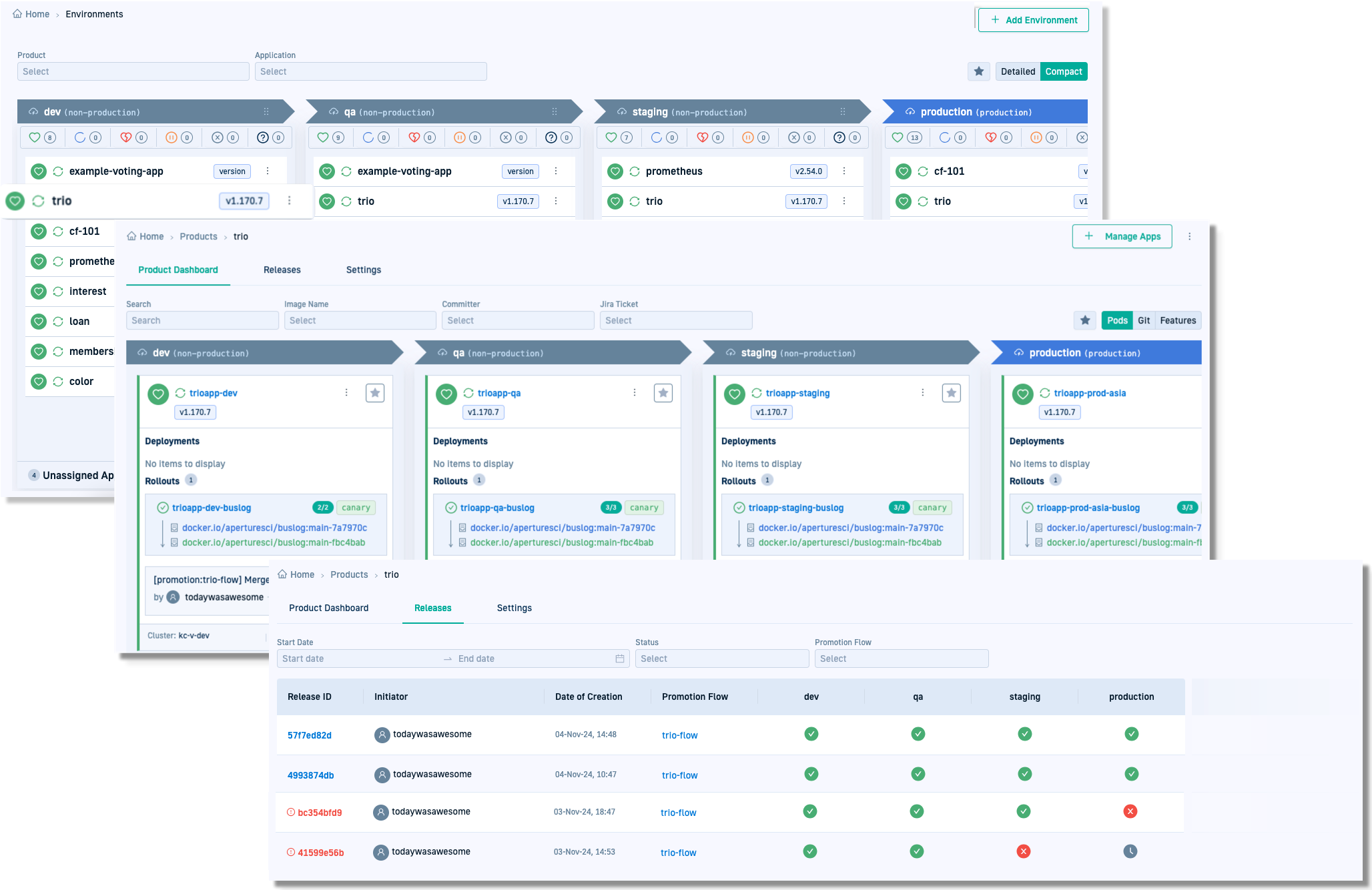 Every promotion is tracked in Git, tied to a commit, ensuring full traceability. Teams can see who triggered a promotion and why. -