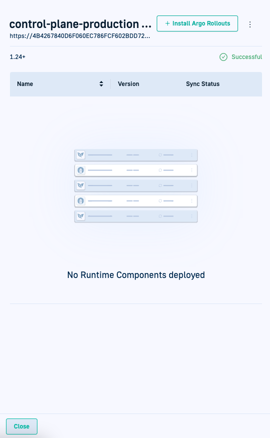 - Select the target cluster, and then select + Install Argo Rollouts.