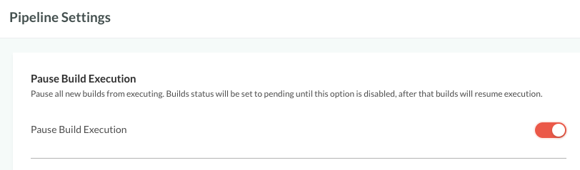 - Paused pipelines are set to status Pending, and remain in this status until Pause build execution is manually disabled for the account.