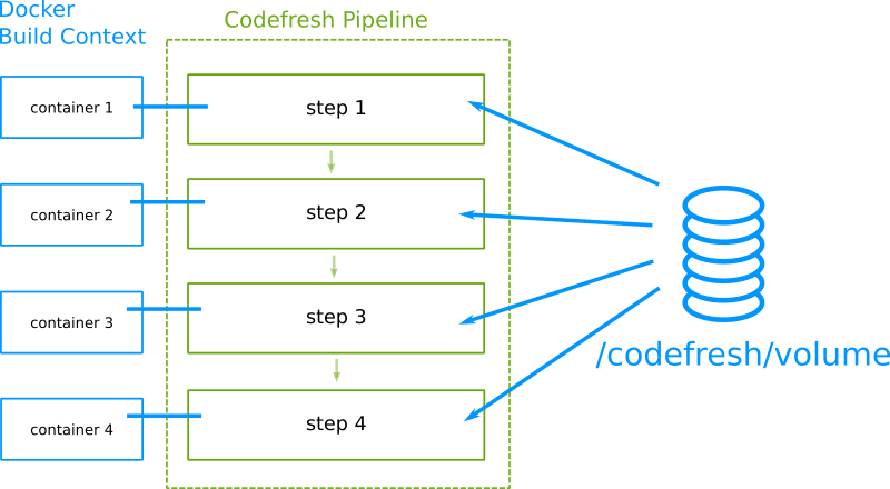If you are familiar with how Codefresh pipelines work you should know about the unique docker volume that is automatically shared between all pipeline steps.