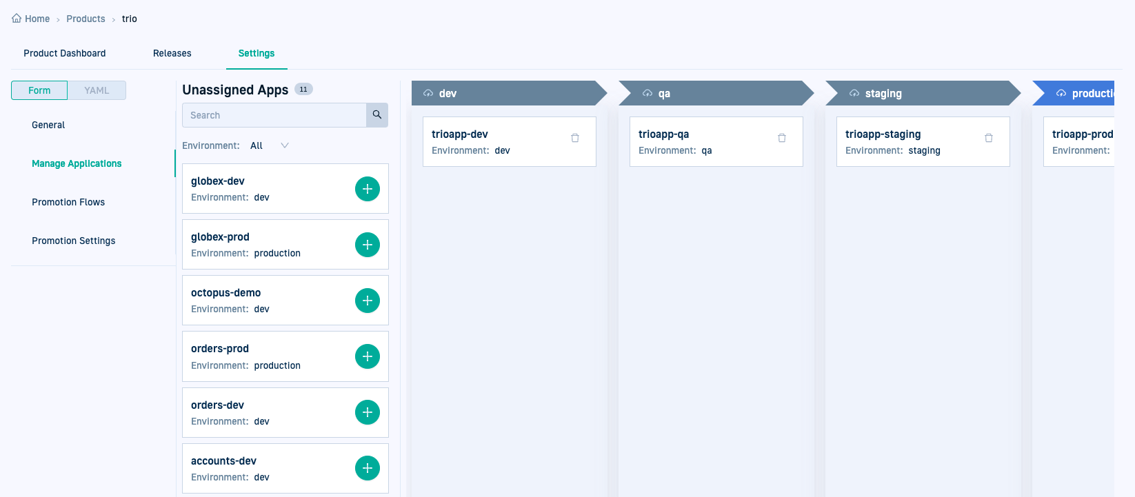 Assign applications to environments. -