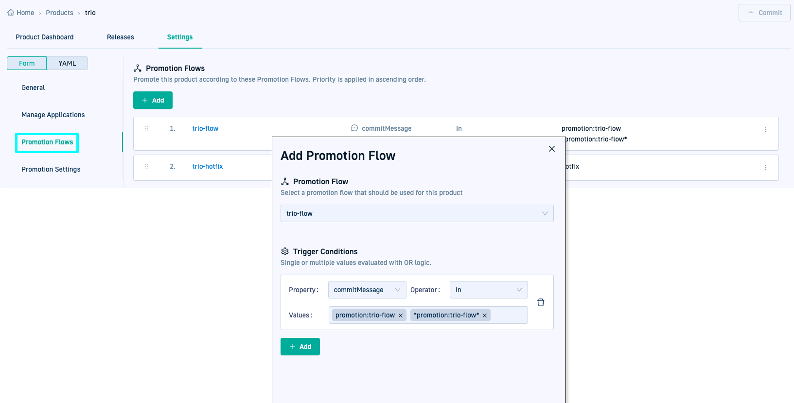 Assigning flows and defining their triggers ensure that changes to the product are promoted under the right conditions, and improves automation for a more reliable promotion process.