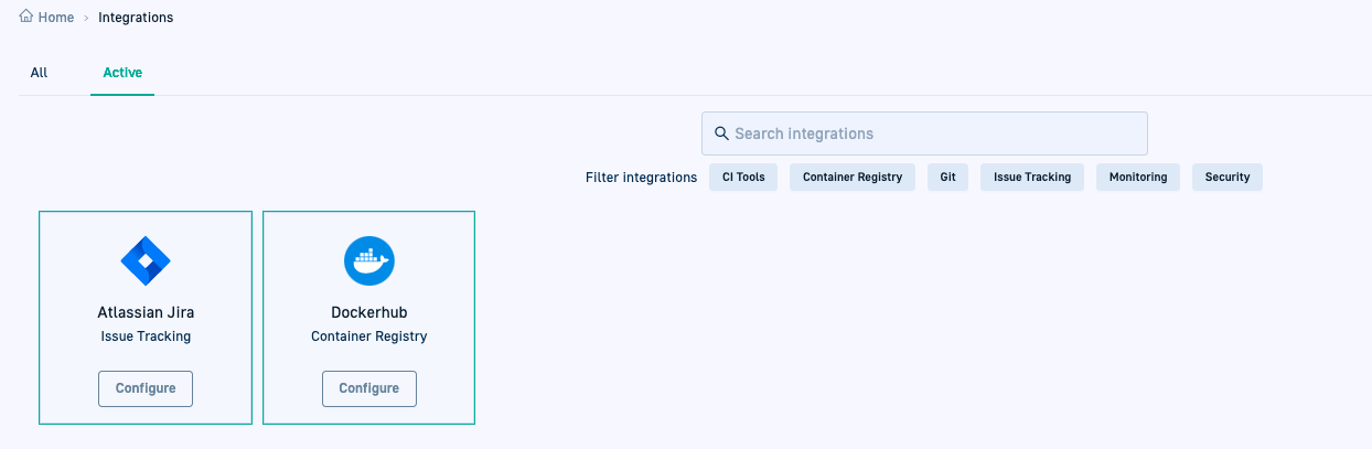 - Filter by Issue Tracking, select Atlassian Jira and click Configure.
