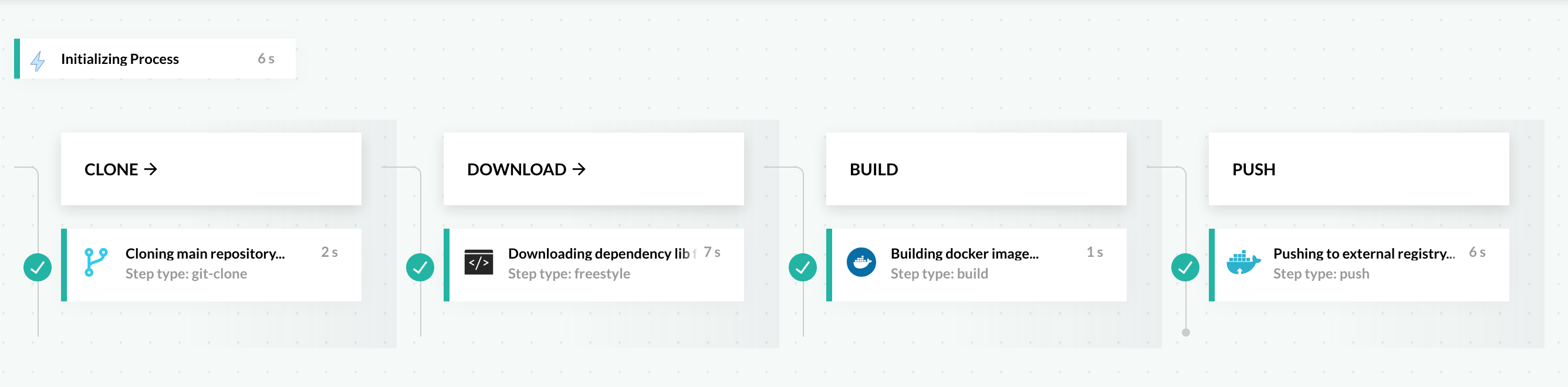 - Pushes the Docker image to the DockerHub registry you have integrated with Codefresh through a push step.