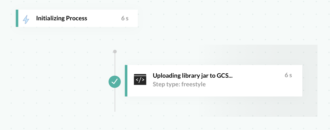 The first pipeline contains one stage/step, to upload the JAR to the Google Storage Bucket.