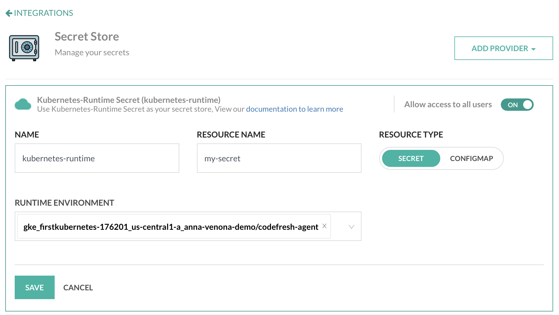 codefresh create context secret-store kubernetes-runtime "test" --runtime "gke_firstkubernetes-176201_us-central1-a_anna-demo" --resource-type secret --resource-name "my-secret"