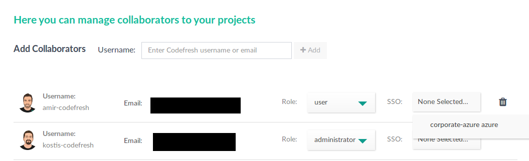 - You set up the SSO provider in Codefresh, and select one or both options for automated team-sync: