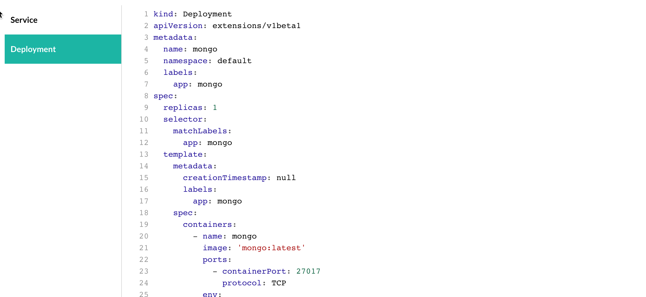In this mode you can define exactly the contents for the service and deployment Kubernetes resources.