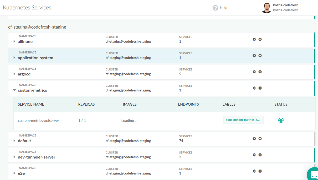 Codefresh includes a built-in Kubernetes Dashboard that allows you to see the state of your clusters, and even make changes if you have the appropriate access privileges.