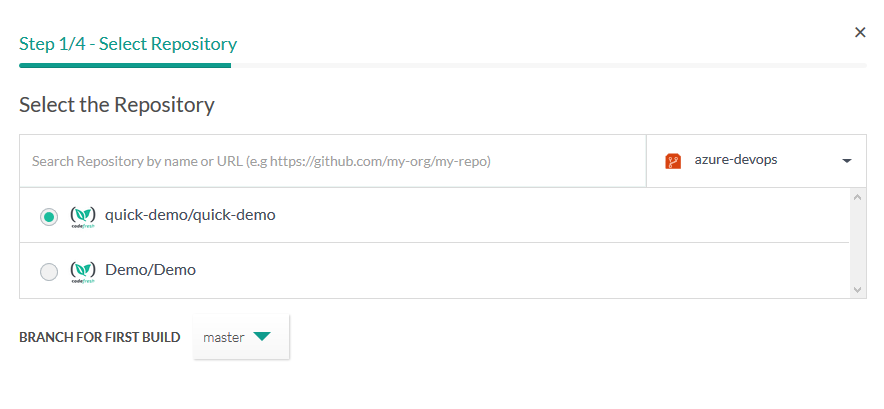 Your Azure DevOps repositories will be available when creating a new project in Codefresh.