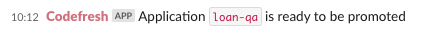 This is an example of the Slack notification sent before promotion starts in an environment.