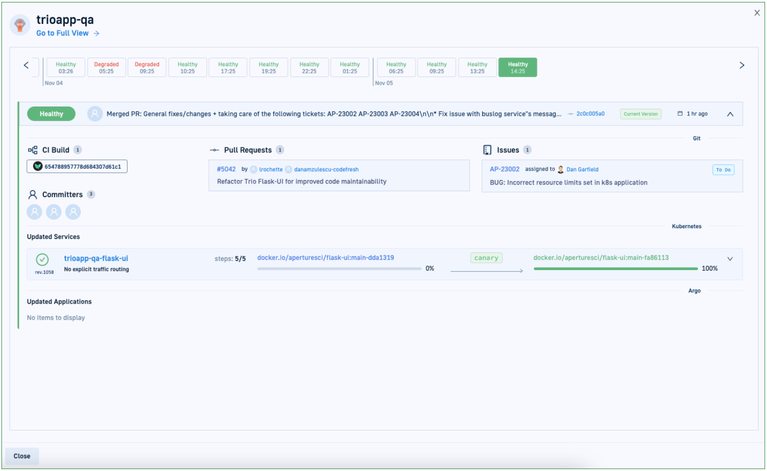 - To see the actual diffs between the applications, switch to YAML view, and then toggle between Full/Compact views.